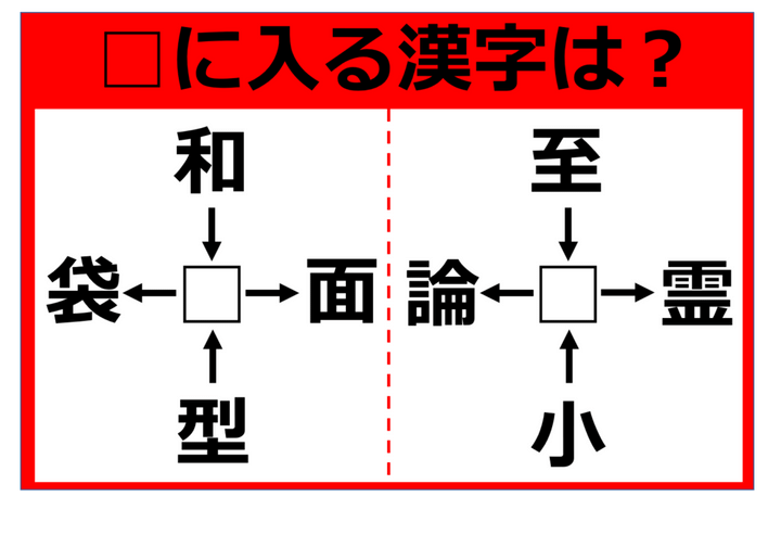 【漢字パズル】和□、□袋、型□、□面 この□に入る漢字を当ててください!