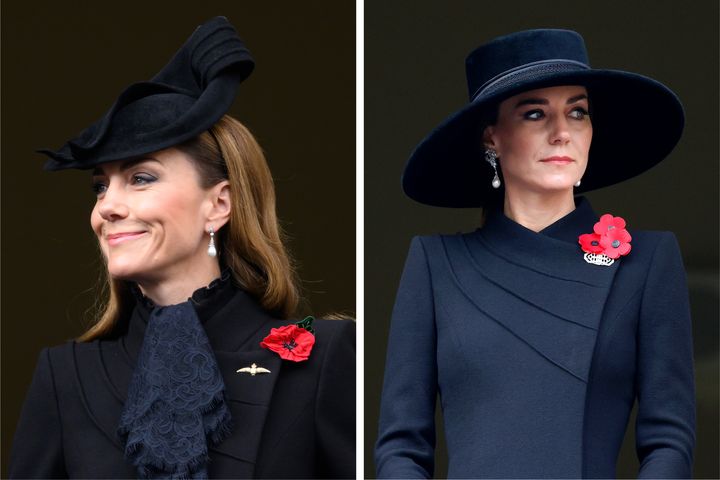 王室の重要行事である戦没者追悼式典でお召しになった、黒のエレガントなドレスコート(キャサリン・ウォーカー)は、3年前の同行事でデビューしたもの。 その時には大きなツバありのお帽子(フィリップ・トレーシー)と合わせた、シンプルで貫禄あるスタイルでしたが、今年は、ドレスコートの襟元を飾るひだ飾り(ジャボ)をプラスされ、ファシネーター型のヘッドドレス(ロック&コー)と合わせ、クラシックなスタイルへとアレンジをされました。 これにより、華やかさが加わっただけでなく、ヴィクトリア朝へのオマージュも感じられる、洗練された皇太子妃らしいスタイルへと格上げされました。
