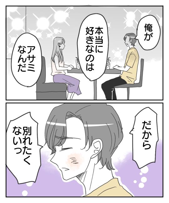 自分が2番手なのではと疑ったアサミが問い詰めると、アキトは妻子持ちであることが判明。