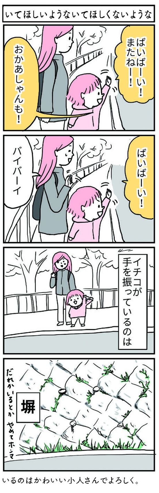 2. 「ばいばーい!」と元気にお別れ。私も手をふるように促されたけど、その相手は…【育児ってこんなに笑えるんや! #23】