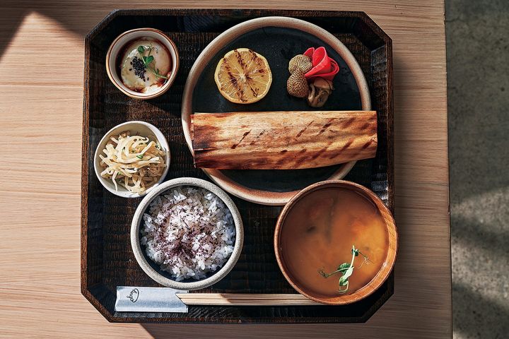 <strong>日本食文化を伝える和定食<br></strong>人気のブランチメニューの和定食。塩麴に漬けた魚を杉板で巻き、焼いたメインデッシュが評判。 Misako Izawa