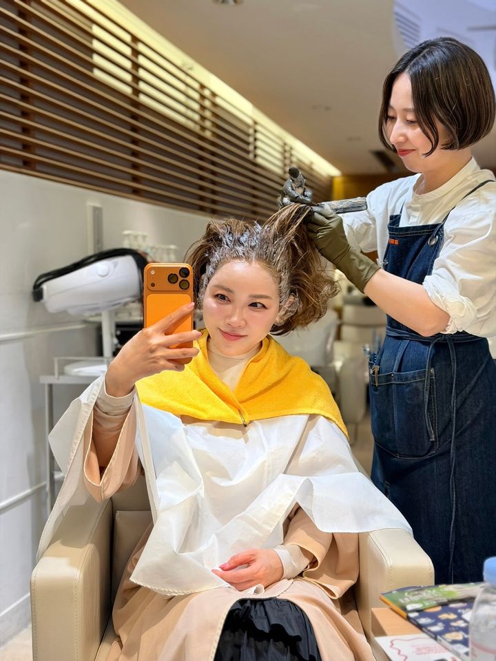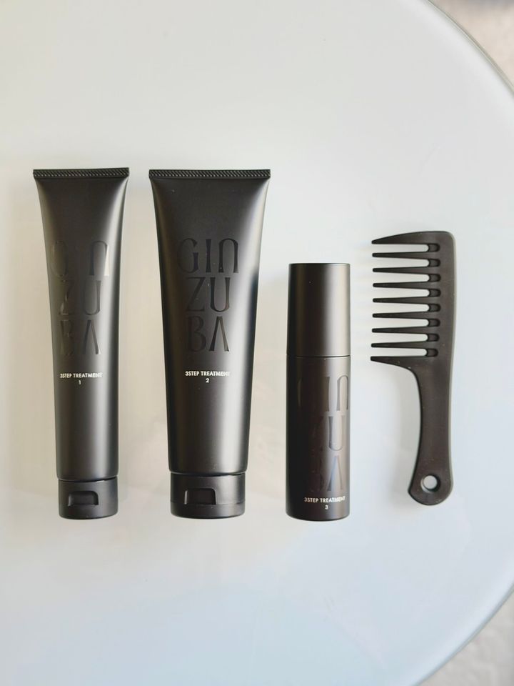 「運気をリセットする年末のヘアメンテナンス。厄落としでカットし、肌を美しく魅せるこだわりのカラーリングで気持ちも新たに。整えたヘアをキープするためにはホームケアがマスト。今年一番のお気に入り、ギンズバ 3ステップトリートメントで艶髪を育みたい」(西村さん)