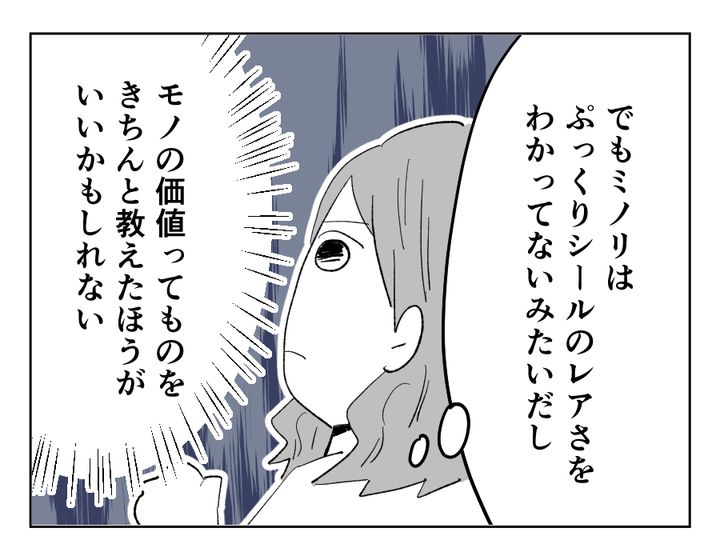 今回の主人公は30代のママ、ユイさん。ひとり娘のミノリちゃんを大切に育てています。子どものころ経済的に余裕がなかったぶん、ミノリちゃんには好きなものを買い与えたいと思っています。しかしある日ミノリちゃんは、高価で希少価値のあるぷっくりシールとペラペラで安そうなシールを、お友だちのシオンちゃんと大量に交換してきてしまいました。