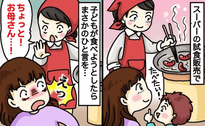 子どもが3歳くらいのときにウィンナーの試食コーナーの前を通り過ぎようとしたら、子どもが食べたがりました。ちゅうちょしましたが、「今日はいいか」と思って子どもにウィンナーをあげようとしたら……。