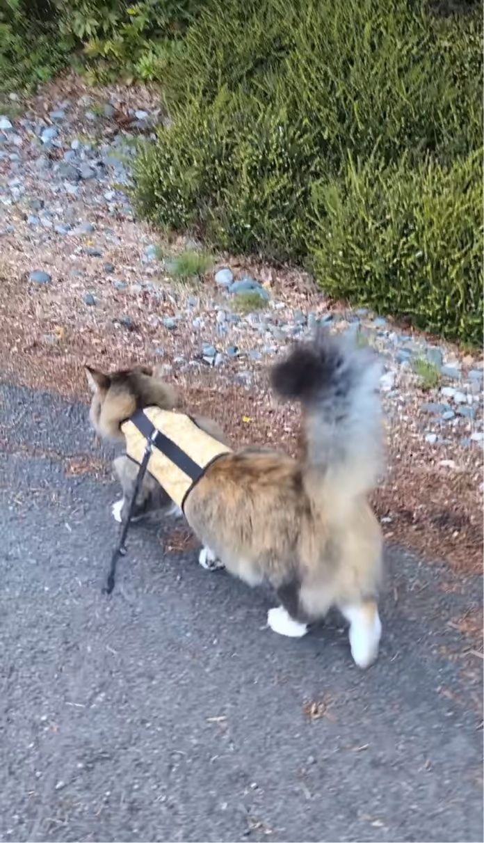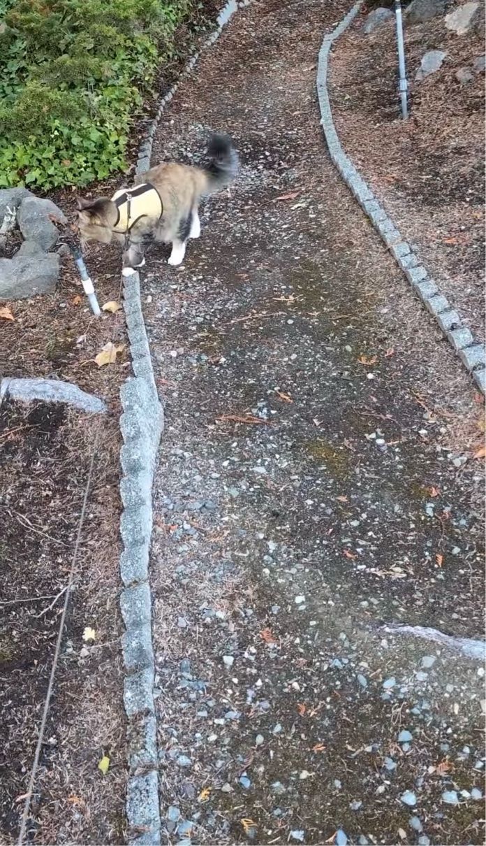 ハーネスをつけて、飼い主さんと外へおさんぽを楽しんでいるこの子は、ネコの『ジャジー』。 そんなジャジーの前に、珍しい子が姿を現したのです。