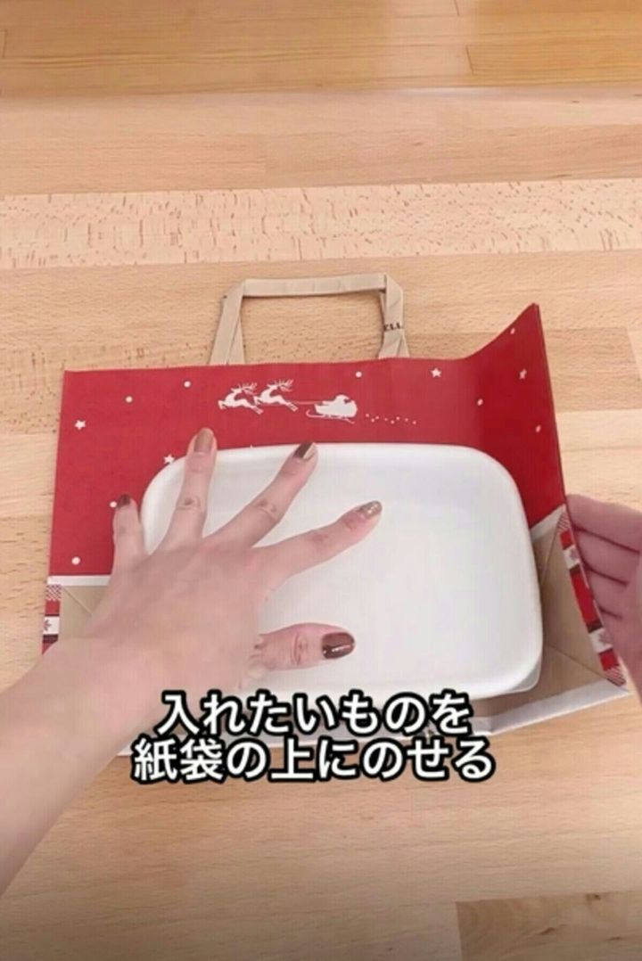 まず、紙袋の上に中に入れたいものを乗せます。
