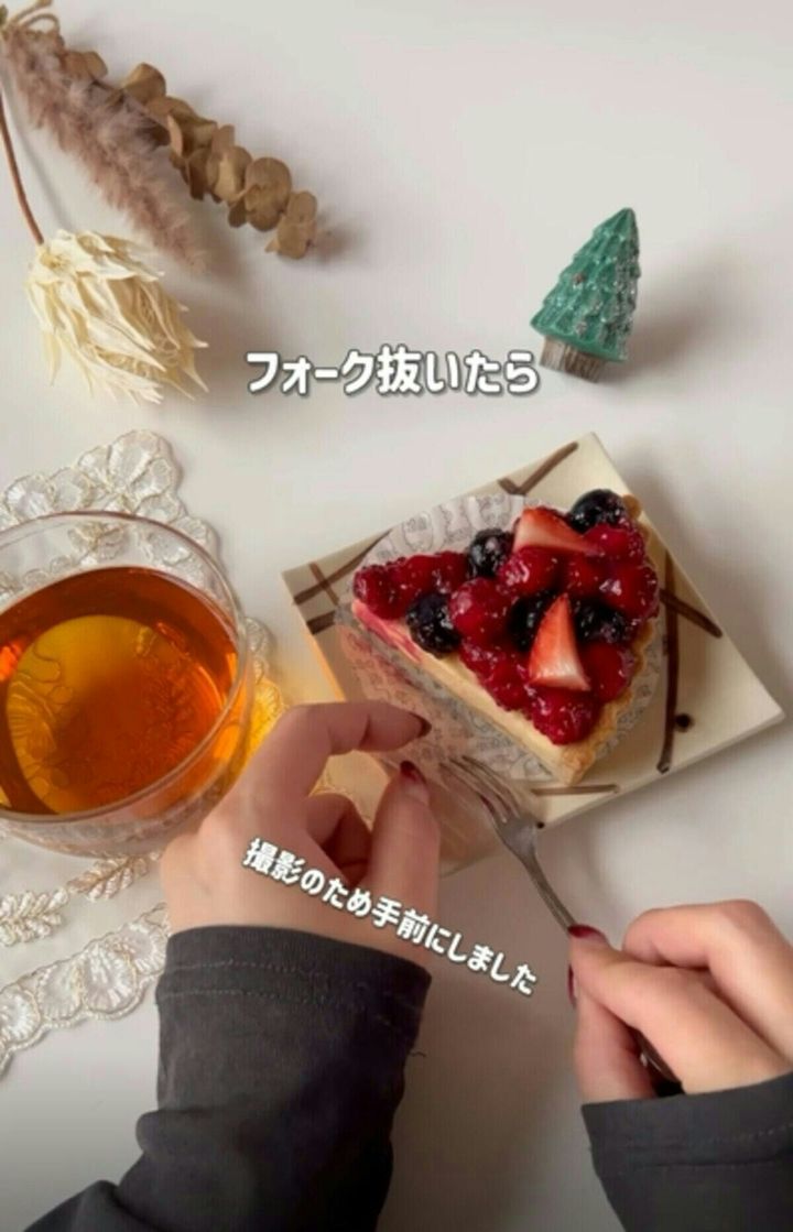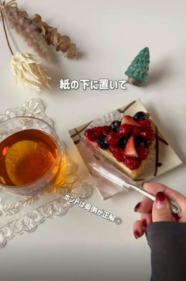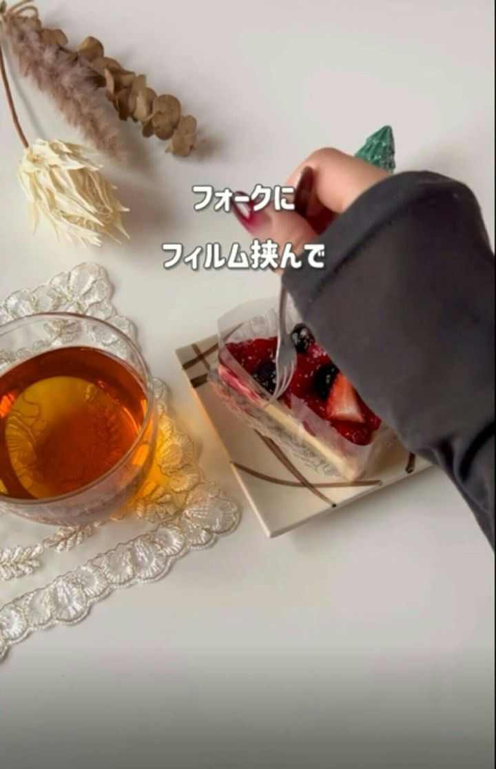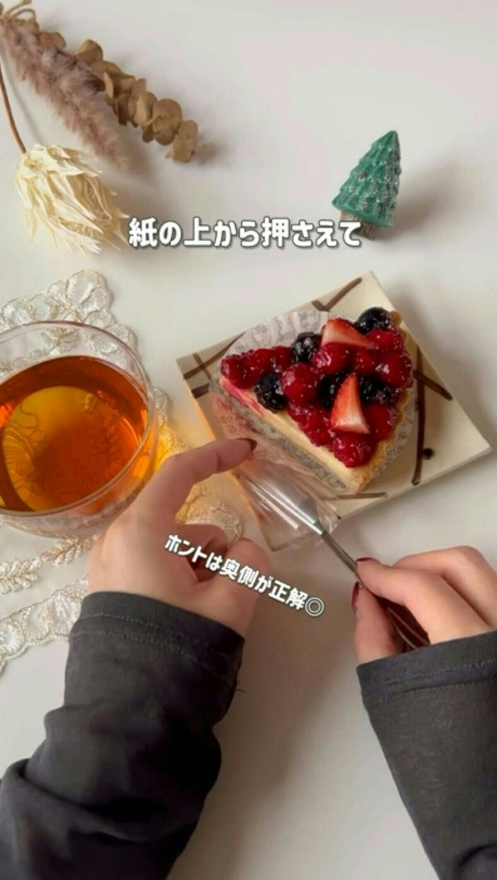 手を汚すことなく、スマートなケーキの食べ方ができますね。ぜひ覚えておきたい、上品な方法です。