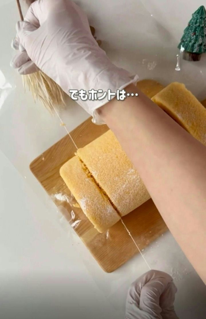 デンタルフロスでケーキがきれいにカットできるなんて。包丁を使わず、ここまできれいにカットできたらうれしいですよね。また、デンタルフロスではなく、細い糸やテグスを使うと、もっときれいにカットできるとのこと。衛生面などが気になる方は、デンタルフロスがおすすめとのことです。