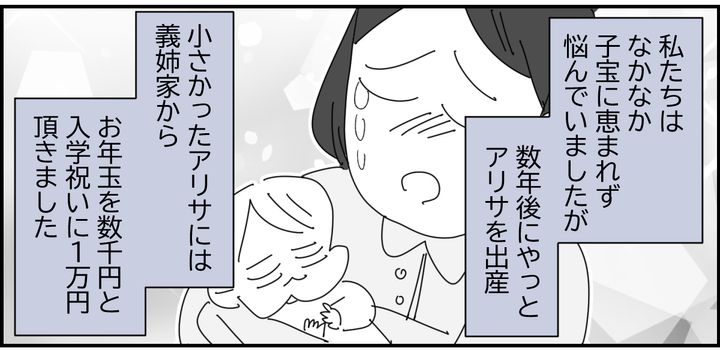 私はナツミ。旦那のコウスケと、3人の子どもたちと暮らしています。結婚当初はなかなか子宝に恵まれず、ようやく授かった長女のアリサは、可愛くて仕方がありませんでした。その後、さらに2人の子ども(ノノカ・スズカ)にも恵まれ、わが家はにぎやかになっていきました。私たち夫婦にまだ子どもがいなかった頃から、コウスケの姉である義姉・ノゾミさんの子どもたちには、入学や誕生日など、節目ごとにお祝いを渡してきました。ところが、私に2人目、3人目の子どもが生まれてからというもの、義姉一家からのお祝いは、いつの間にか一切なくなり、気が付けば疎遠になっていたのです。