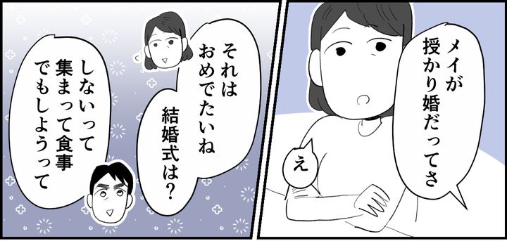 そんななか久しぶりに義姉から連絡があり、メイちゃんの結婚と妊娠を報告されました。