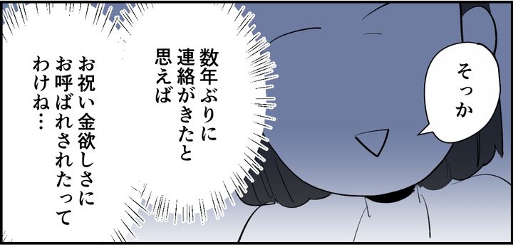 喜ばしい話のはずなのに、これまでの経緯を思い返すと、「お祝い金目当てなのでは?」と感じてしまう自分がいます。