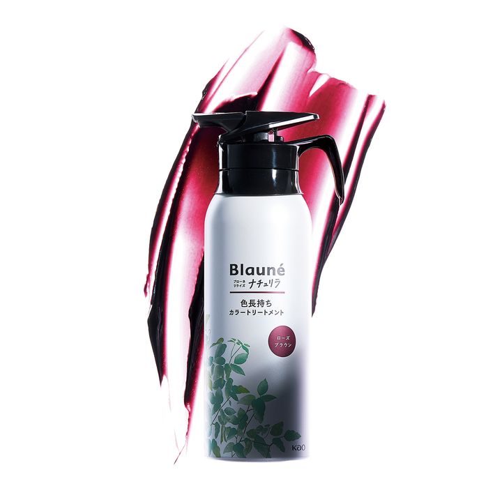髪が本来持っているメラニンに着目。天然由来の着色成分で、優しい染まりを実現。軽く押すだけで適量が出てくるプッシュノズルが便利。ブローネ ナチュリラ 色長持ちカラートリートメント ローズブラウン155g¥2,970〈編集部調べ〉(花王)