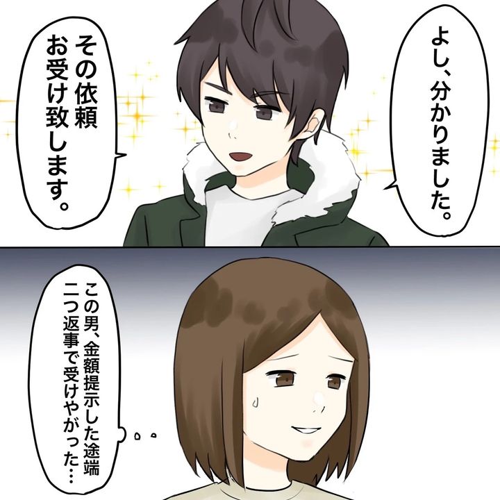 「ビチ子から金が支払われずに困っている」というたくみをみちこは逆に雇い、ビチ子を探せと依頼した。