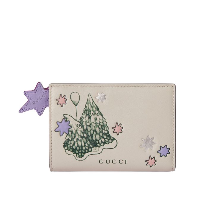 グッチの優美な世界観に、アーティスト ヒグチユウコの描き出すファンタジックなイラストを融合。内装はホリデーシーズンに相応しいグリーンのバイカラー。L字ファスナー付きコインポケットは2つのコンパートメントを有しており、整理整頓しやすくデイリーユースにも最適な逸品。