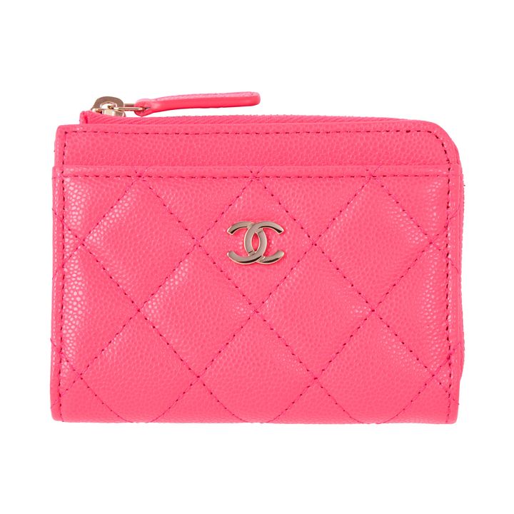毎日使うものだから、気分を上げてくれるカラーを選びたい。メゾンを象徴するキルティングステッチをホットピンクで大胆に彩ったカードケースは、キャッシュレス派におすすめ。ファスナー付きのメインコンパートメントはコインや紙幣の収納に活用して。