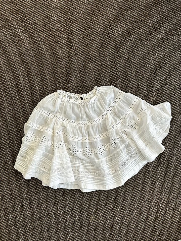 2025春夏のトレンドとなったボーホーシックな気分を取り入れようと、基本のキに帰って、『イザベル マラン』のセカンドライン“マラン エトワール”のコットンアイレットブラウスを購入。冬はカーディガンやジャケットに合わせて使える、通年仕様なところがお気に入り」