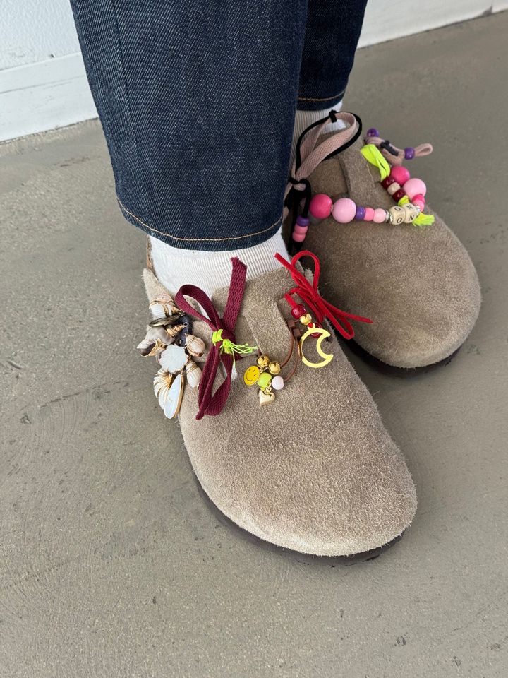 「子どもと出かける日々なので、毎日使い続けられる機能性とタイムレスなアイテムを中心に買いそろえたいと思い、今、再びトレンドになっている『ビルケンシュトック』の“ボストン”をお出迎え。どんなコーデにもなじむトープカラーを選びました。ベルトの箇所にいろんなチャームを付けて自分らしくアレンジしたら、より一層愛着が沸き、毎日のようにヘビロテしています」