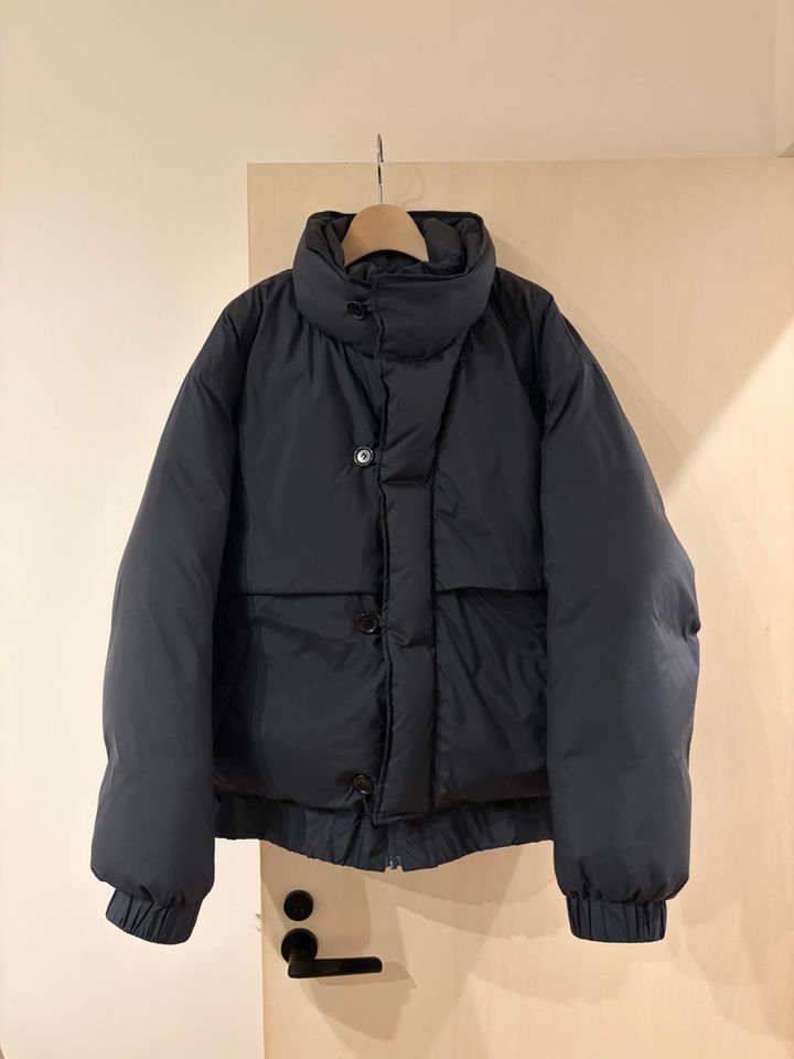 「今シーズン購入した、『アーニーパロ(Ernie Palo)』のメンズのダウンジャケットです。スポーティーすぎず、オーバーサイズすぎず、スタイリングを問わずバランスのとりやすいシルエットのダウンジャケットをなかなか見つけられませんでした。こちらはマットなネイビーということもあり、モードなスタイルにも少しコンサバなスタイルにも合うので、寒くなってからよく着ています。日々自転車に乗るので、防寒性もばっちりで、とても重宝しています」