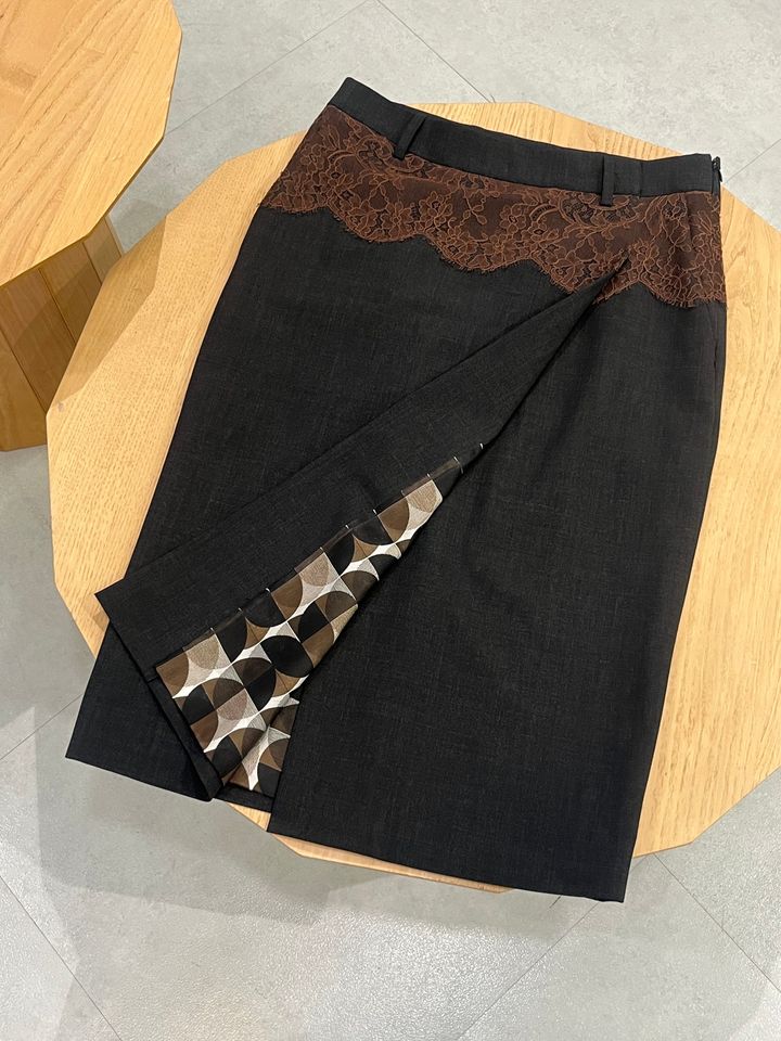 「『フミカウチダ』のアイテムは、毎シーズン何かしら手に入れています。2025秋冬コレクションでは、展示会でその美しいたたずまいに一目ぼれした、リバーレースがポイントにあしらわれているミディスカートをゲットしました。