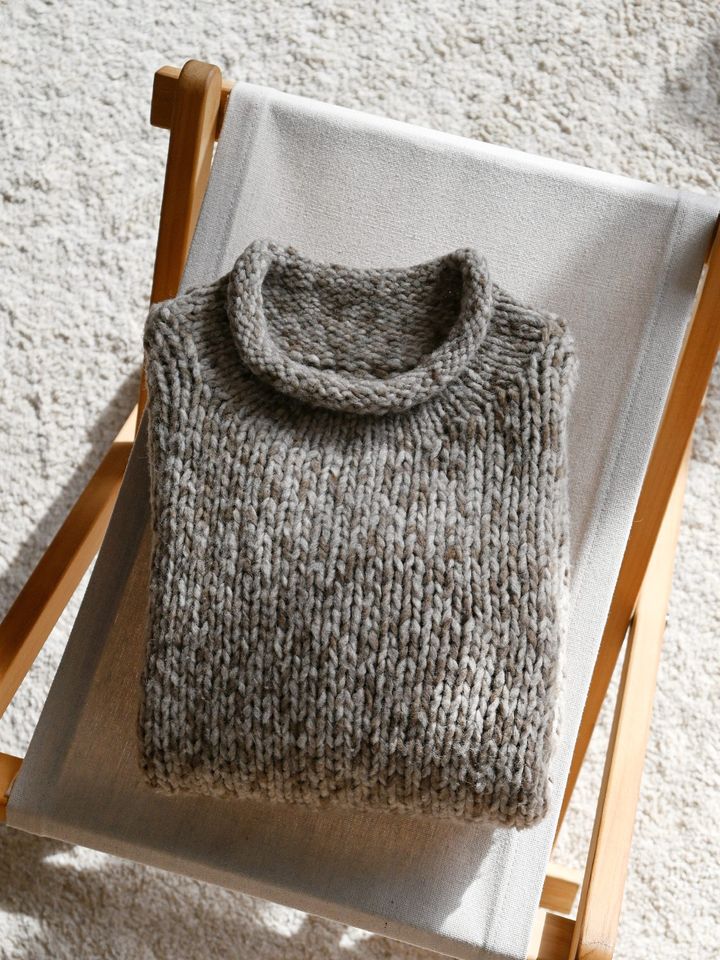 ベビーアルパカとメリノウールをブレンドすることで、驚くほどやわらかく、肌に触れるたびにその心地よさを実感します。ロールネックと肩を落としたシルエットには、今のムードにしっくりくるモダンさもあり、購入を決意。量産では決して出せない手仕事ならではの豊かな凹凸と色のニュアンスが、ワードローブに静かな奥行きをもたらしてくれます」