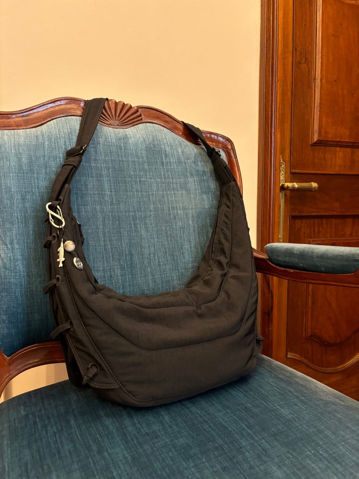 「どんなスタイルにも寄り添う絶妙なバランスで、必要十分な容量とミニマルなフォルムが共存していて、仕事でも私服でも自然と手に取ってしまいます。柔らかなヌバックの質感と、身体に沿うような丸みのあるラインが美しく、持つだけで装いの完成度を引き上げてくれる“相棒”的な存在です」