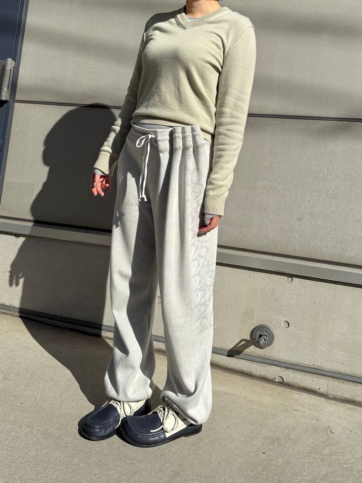 ソウル発の『ウリカサンクトゥス(ULIKASANCTUS)』。アイボリーを購入後、あまりのはきやすさに色違いでそろえました。生地のやわらかさや、ウエスト部分のシャーリング、さりげない数字のグラフィックなど、心地よさとデザイン性が両立していて、撮影時のユニフォームのようになっています」