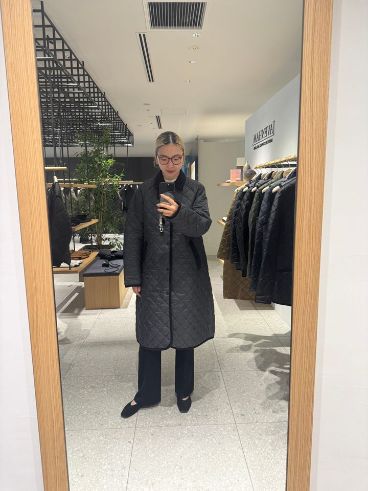 「今年は今まで後回しにしていた、一生ものの定番品を買うと決めていました。以前からウィッシュリストにもあった『ラベンハム』のキルティングロングコートをついに購入。軽量で持ち運びしやすく、保温性に優れているので、子どもとのレジャーシーンにも活躍。モードなネイビートーンを選んだので、カジュアルになりすぎないところも気に入っています」