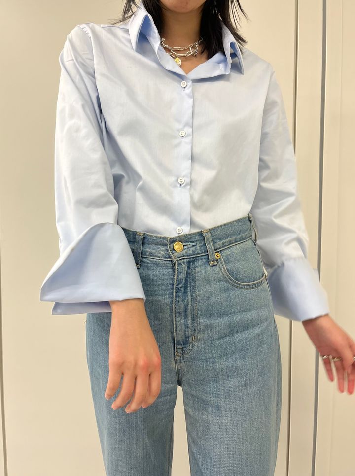 「『オスロランウェイ』取材で初めて行かせてもらったノルウェー。そこで出合った『ジュリー ジョセフィーヌ(Julie Josephine)』というブランドのシャツ。ホワイトシャツがシグネチャーアイテムなのですが、ずっとブルーシャツをさがしていたので、私はブルーをゲット!」