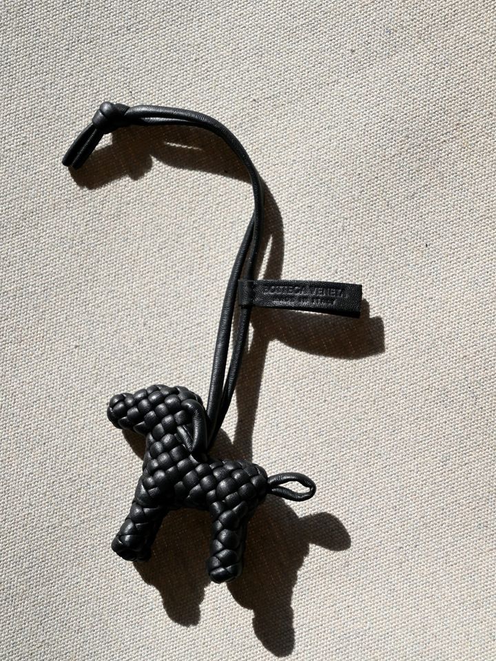 「ブランドを象徴する“イントレチャート”技法で、ナッパレザーが犬のモチーフに編み込まれたチャーム『ボッテガ・ヴェネタ』らしい精緻な手仕事と遊び心が共存したデザインに一目ぼれしました。愛犬の2歳の誕生日に、紅葉が深まり始めたセントラルパークを散歩したあとマディソン・アヴェニューの店舗で購入したのですが、このチャームを見るたび、あの日の穏やかな景色を思い出します」