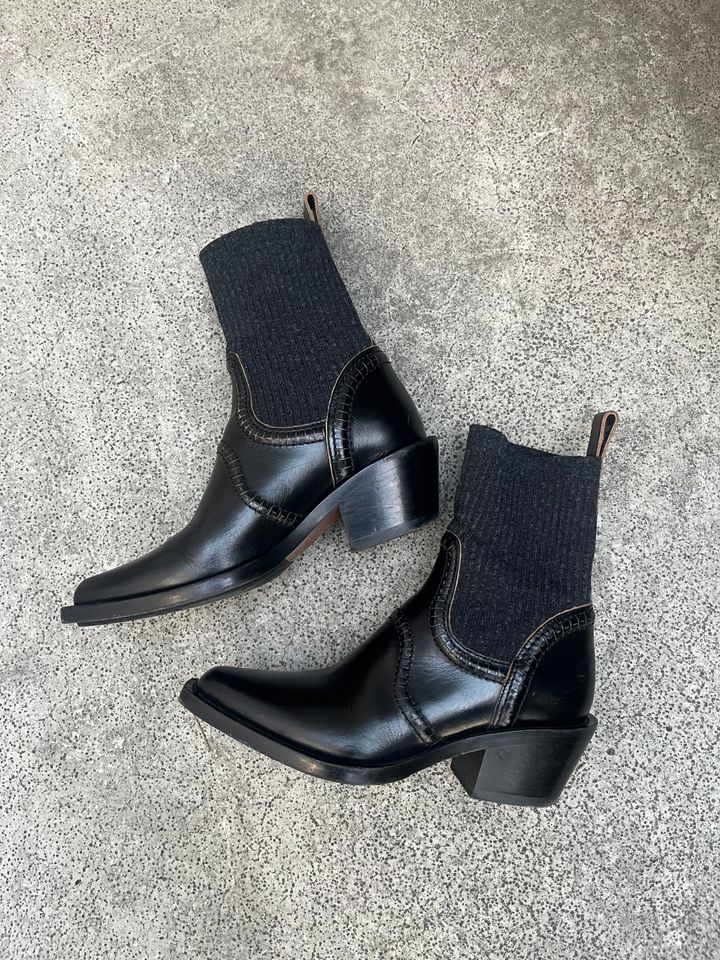 くるぶし部分がソックスデザインになっていて、ぴたっと足のラインにフィットしてくれるところやウエスタンブーツのようなシルエットがお気に入りです♡」