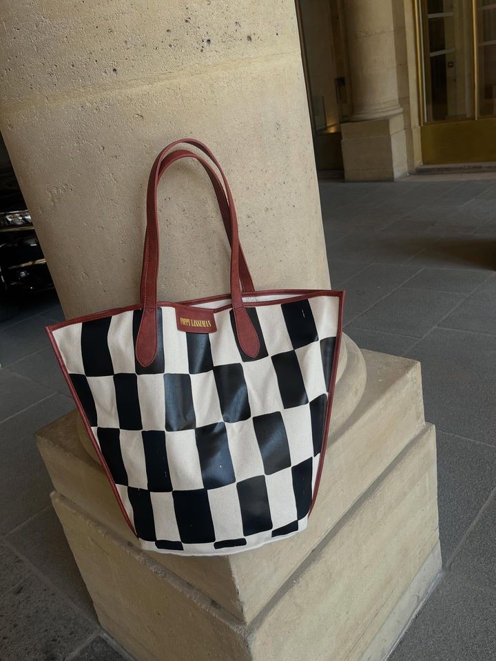 「パソコンの入る手持ちのお仕事トートバッグが黒しかなく、全身が重く見えてしまう時も。そんな悩みを解決したのがオーストラリア発の『ポピー リシマン』のトートバッグ。手書き風でどこか抜けたニュアンスがあるチェッカーボード柄は、モノクロなのでコーディネートを邪魔しすぎることもなく、シティ感もあるのに、夏はビーチバッグとしても大活躍!」