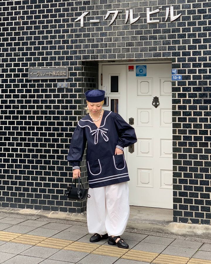韓国・ソウル発『GAYEON LEE』のセーラーミニワンピースは、さっと着るだけでコーディネートが即完成する優れもの。トレンドのバルーンパンツをあわせたリラックスムードあふれるマリンルックが、今年の夏から秋にかけて大活躍しました」