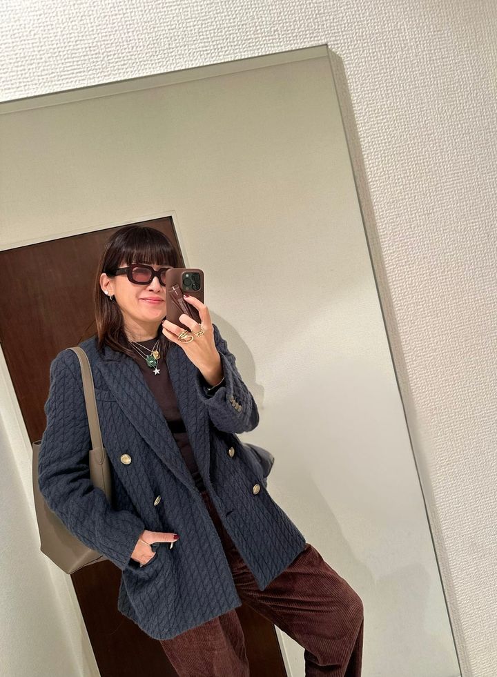 「夏に行った『ブロッサム エイチ カンパニー』の展示会で一目ぼれし、その日のうちにお持ち帰りしたこのジャケットは、下半期いちばん出番の多かった一着。印象的なポケットディテールに加え、付属のウエストベルトをきゅっと結べば、自然とスタイルアップがかなうのもうれしいポイント。さっと羽織るだけでコーディネートを引き締めてくれる万能さも魅力です。