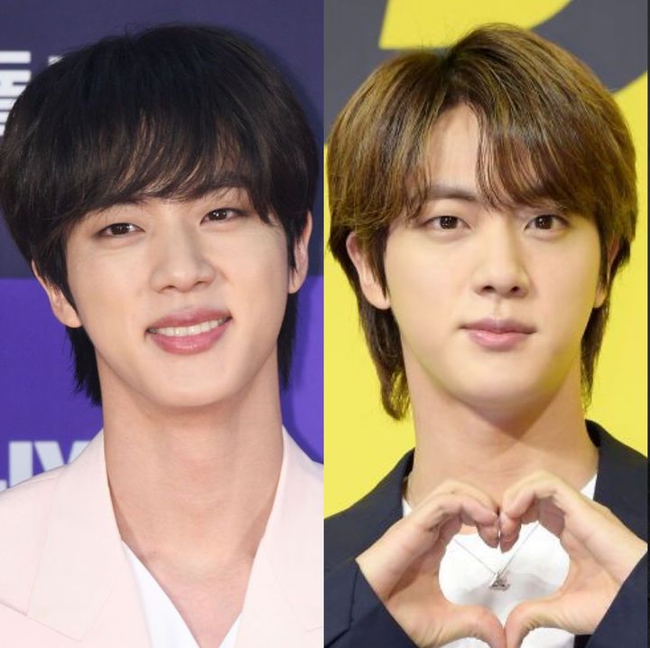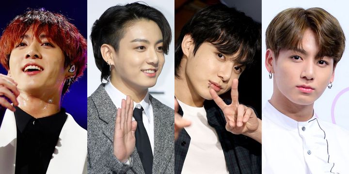 5枚目のミニアルバム「LOVE YOURSELF 承 'Her'」ではイエローみを抑えた金髪アッシュに! センターパートで分けた前髪をサイドに流し、ちらりとおでこを見せることで、ハイトーンながらも落ち着いた雰囲気に。