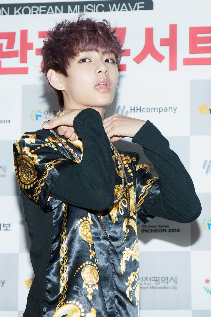 2013年6月にBTS(防弾少年団)のメンバーとしてデビューしたV。ヒップホップ色強めなコンセプトに合わせて、パープルヘアの毛先を遊ばせたヤンチャなヘアスタイルに。