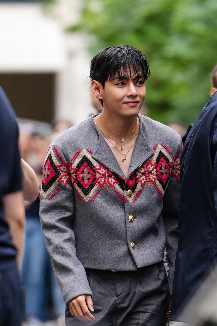 除隊後初の海外スケジュールとして、パリで行われた「セリーヌ」のショーに出席。ウェットな質感のダウンヘアに、ジャケットの胸元をざっくり開けたスタイリングで、入隊前よりも増した色気を全開に。