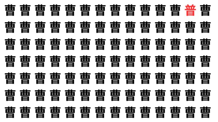 たくさんの「曹」の中に、よく似た別の漢字が1文字だけ隠れています。