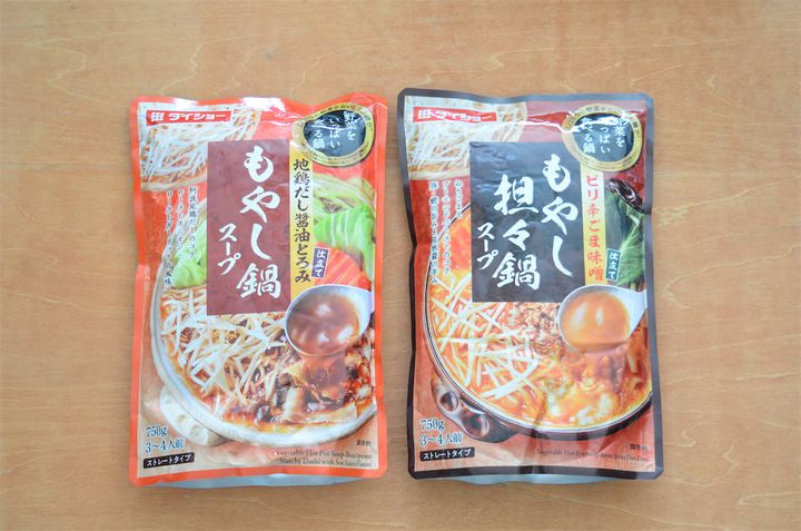 左:「野菜をいっぱい食べる鍋 もやし鍋スープ」希望小売価格394円(税込)