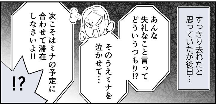 これで義母もミナちゃんも大人しくなったかと思いきや、そうではありませんでした。