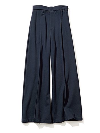 ネイビーワイドパンツ/ロンハーマン ウエストまわりがフラットだから、タックINしたときもすっきり整う。腰位置を高く見せるハイウエスト。