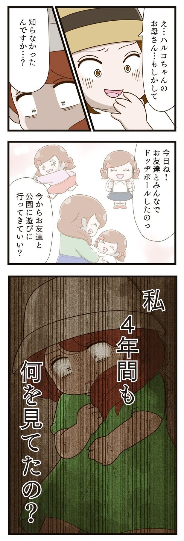 「お姉ちゃん学校でいじめられているんだって」息子の一言がきっかけで、母親は娘・ハルコの言動に違和感を抱くようになる。その結果分かったのは、ハルコが4年間、ひとりでいじめに耐えて隠し続けていたこと。いじめの本当の加害者は、被害者は誰? いじめと向き合う家族が希望を取り戻すまでの物語『家族全員でいじめと戦うということ。』を再連載でお届けします。いじめの原因になった同級生を描く新作『「お母さんの言うとおり」にしてきたのに 家族全員でいじめと戦うということ。 サキコの場合』も好評発売中です。