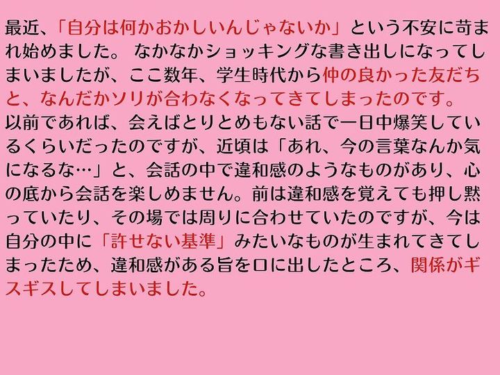 読者からのお悩み「仲の良かった友だちと価値観がすれ違うようになった気がして…自分がおかしくなっちゃったの?」