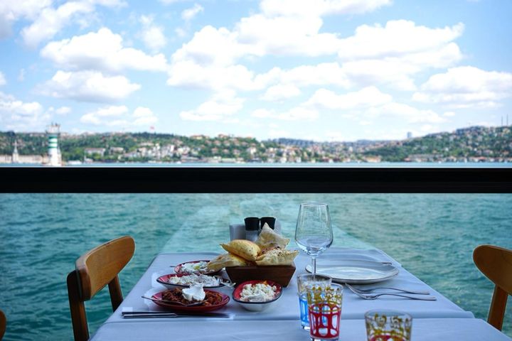 ボスポラス海峡に浮かんでいるかのような、アリ・オジャクバシュ・クルチェシュメの窓側の席。 写真提供=山路美佐