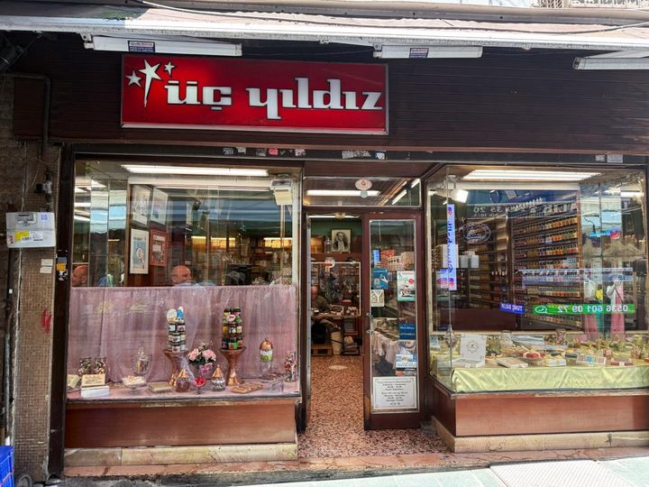 「イルミ・ドクズ・エキム」の数軒隣にあって偶然発見した「Üç Yıldız Şekerleme(ウチ・ユルドゥズ・シェケルレメ)」は1926年からこの場所で営み続けているお菓子屋さん。