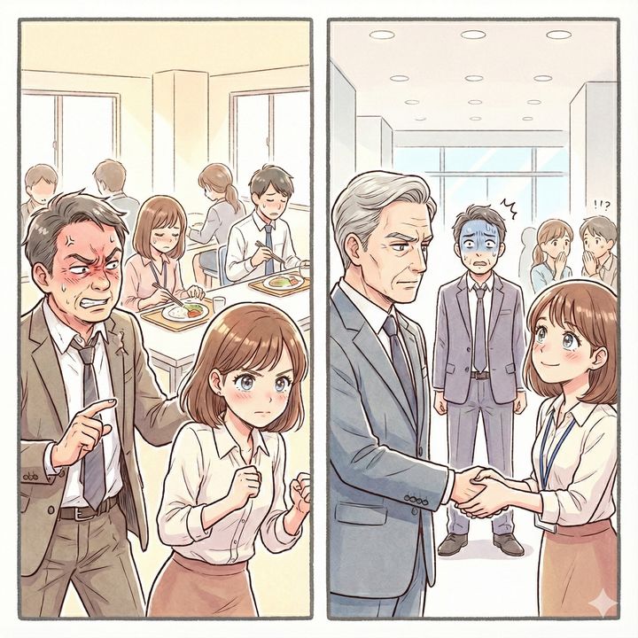 しかし、直属の上司は女性が活躍することを嫌う古い価値観の持ち主でした。ある日のランチタイム、彼は同僚たちの前でこう言い放ちました。