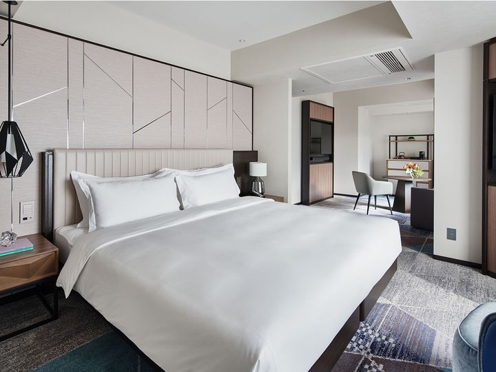 2024年12月、15ヶ月に及ぶ大規模な改装を終え、759の客室を刷新し「水スイート」と「空スイート」を増設。ともに折り紙をモチーフにした幾何学模様を随所にあしらい、和の趣を感じさせる。