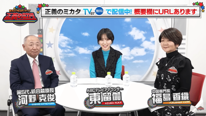 ニュースの正しいミカタを徹底解説する情報バラエティ番組「教えて!ニュースライブ 正義のミカタ」(ABCテレビ)。東留伽アナがMCを務める番組公式YouTubeチャンネル「正義のミカタチャンネル」で、中国専門家・福島香織氏と第5代統合幕僚長・河野克俊氏が、中国軍機による自衛隊機へのレーダー照射問題について語った!