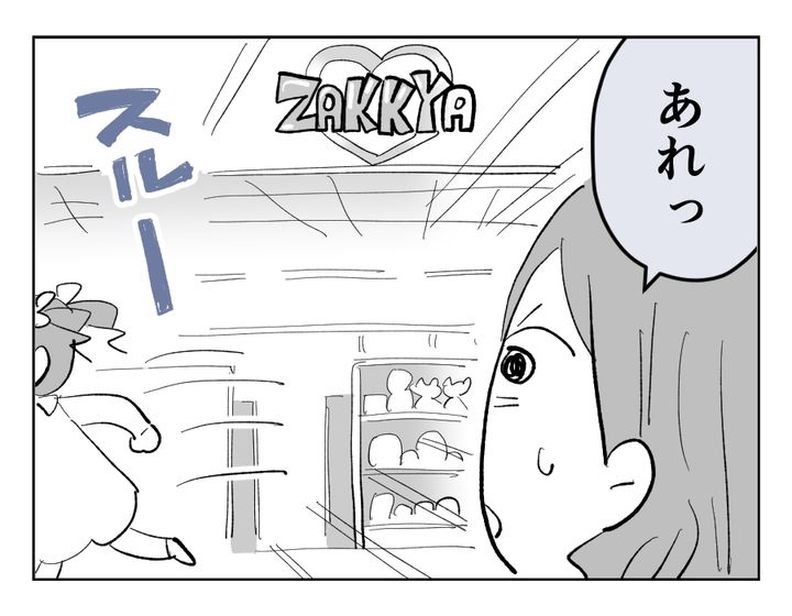大量に交換してしまったぷっくりシールの価値をちゃんと理解してもらうべく、娘に渡した500円。シールがたくさん売っている雑貨屋の前で放つというのはユイさんなかなかの策士……だと思ったのですが、なぜだかミノリちゃんは雑貨屋へ向かいません。「シールを買う」と言ったのに……? 他に500円をもって行きたい場所があるのでしょう。子どもは親の思い通りにはいきませんね。
