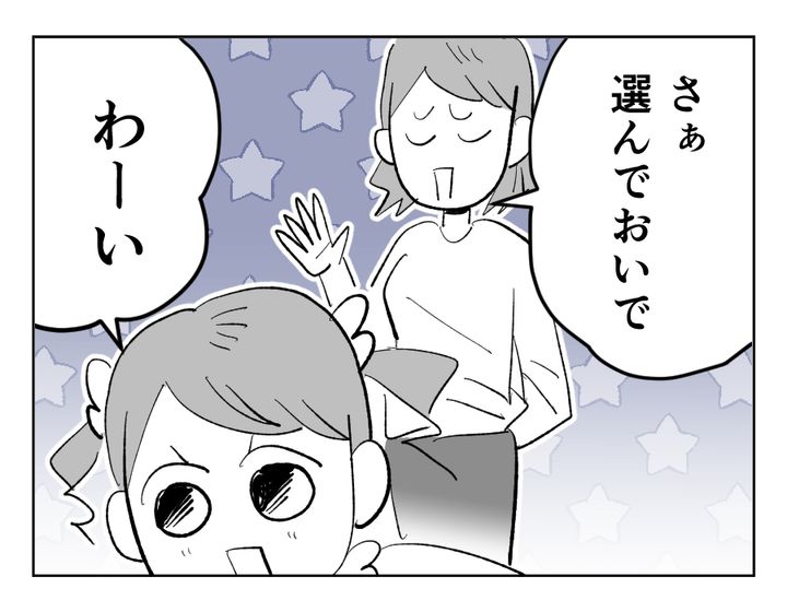 今回の主人公は30代のママ、ユイさん。ひとり娘のミノリちゃんを大切に育てています。ある日ミノリちゃんは、高価で希少価値のあるぷっくりシールとペラペラで安そうなシールを、お友だちのシオンちゃんと大量に交換してきてしまいました。そこでユイさんはお金の価値を教えるため、ミノリちゃんに「決められた金額内でのお買い物」をさせることにしました。