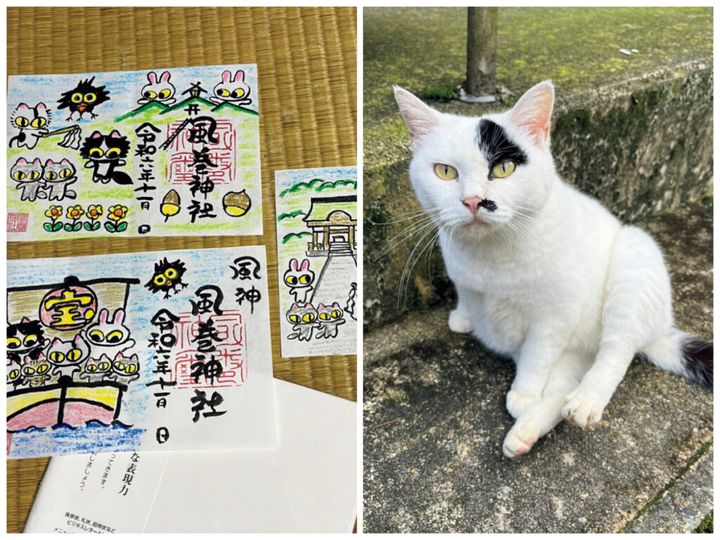 一枚一枚手描きされた御朱印。クレヨンで描かれた神社猫・ちょろみちゃんのかわいらしい姿も!